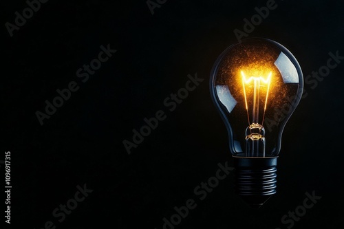Glowing vintage incandescent light bulb against dark background for design inspiration