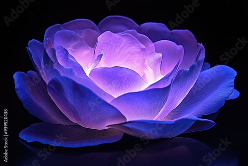 glowing violet rose flower on black background