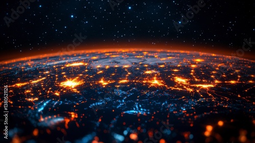 Glowing world. City lights sparkle across the horizon under a starlit sky