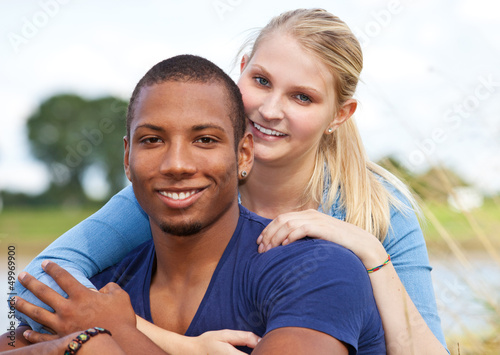 couple, couple, relation, happy, contented, positive, merry, outdoors, outside, nature, youth, young, good-looking, attractive, tolerance, integration, multicultural