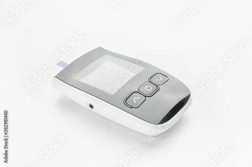 Glucometer on white background. Diabetes concept