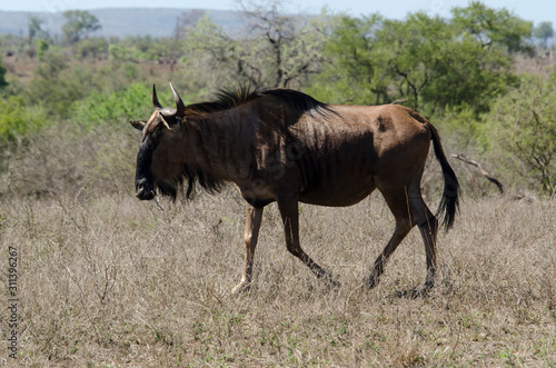 Gnou à queue noire, Connochaetes taurinus, Parc national Kruger, Afrique du Sud