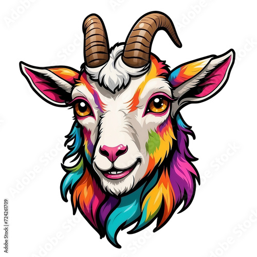 Goat modern pop art style, Colorful Goat illustration, pastel sticker cute colors,