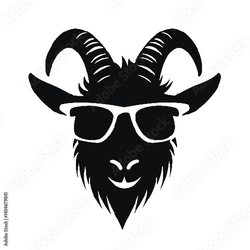 goat wearing sunglasses illustration, goat head and sunglass silhouette vector isolated on white background