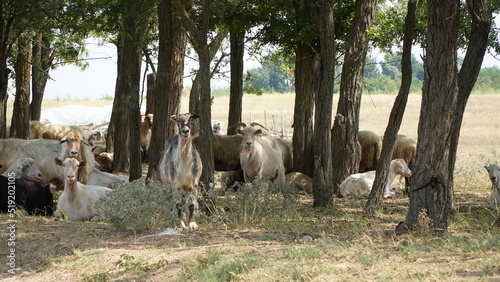 Goats.Goats sitting in the shade of trees.Goats sitting under trees because of the heat wave.