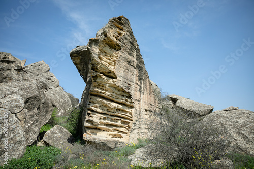 Gobustan,Azerbaijan.A national treasure,a landmark,a rocky area with a rich and ancient history.district of Azerbaijan.On the rocks are drawn pictures of people who lived here in ancient times.