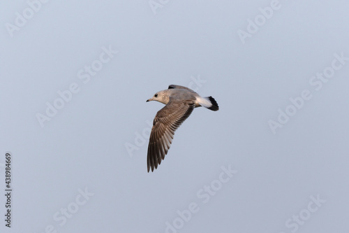 Goéland cendré Larus canus en vol sur le Rhin en hiver