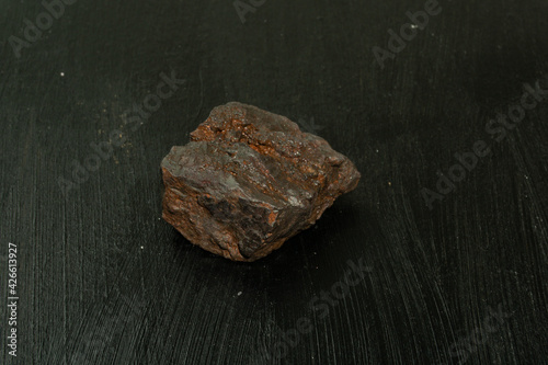 Goethite from Morocco. Natural mineral stone on black background. Mineralogy, geology, magic of stones, semi-precious stones and samples of minerals. Close-up macro photo.