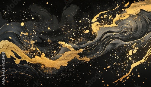 gold, black, abstract, texture, pattern, marbling, liquid, art, design, background, gold, dark, luxury, elegant, smooth, flowing, wave, splatter, speckled, dot, metallic, glamour, modern, contemporary, graphic, poster, print, cover, invitation, decoration, card, flier, page, banner, wallpaper, website, app, business, cardboard box, digital, mixed, media