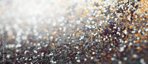 Gold and black glitter shine dots confetti. Abstract light blur blink sparkle defocus backgound.