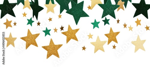 confetti, star, gold, green, glistering, party, celebration, decoration, festive, background, design, pattern, sparkle, holiday, event, christmas, new year, birthday, decor, graphic, image, decorative, colourful, celebratory, modern, elegant