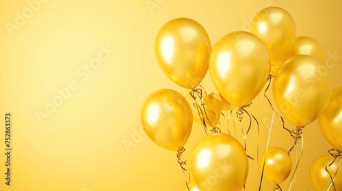 Gold balloons with falling foil confetti on black and white background ,party concept