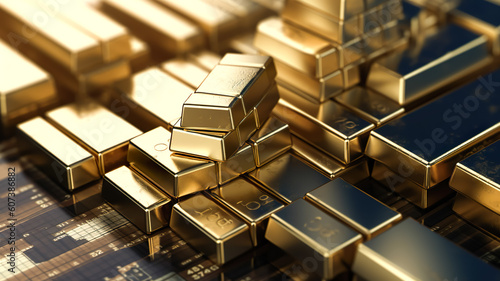 Gold bar with investment concepts.market price monitor.financial economy and strategy.wealth of investor asset.generative ai technology