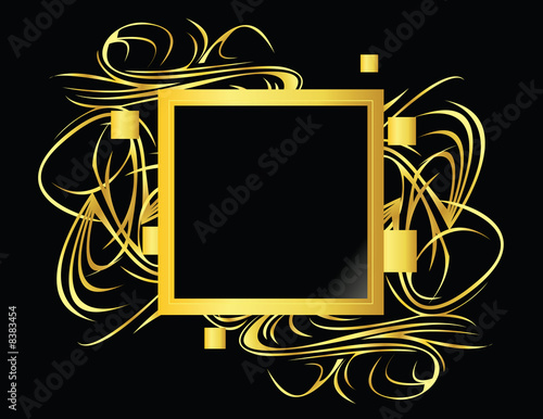 square, gold, gold, decorative, element, illustration, abstract, badge, banner, black, curly, curving, decoration, elaborate, elegant, emblem, gilded, metallic, overlapping, shiny