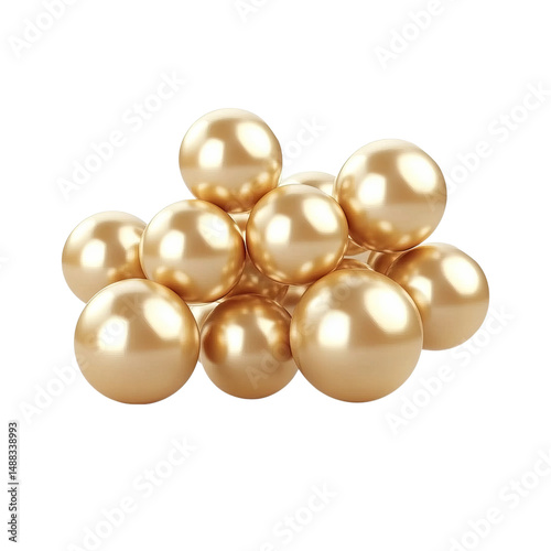 Gold pearls in the shape of a bouquet, isolated on a transparent background Png file format
