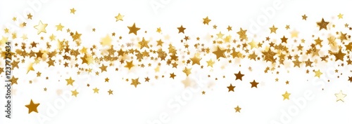 Gold star confetti stream, white background, celebration design