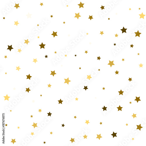 Gold stars. Confetti celebration. Festival decor. Vector illustration