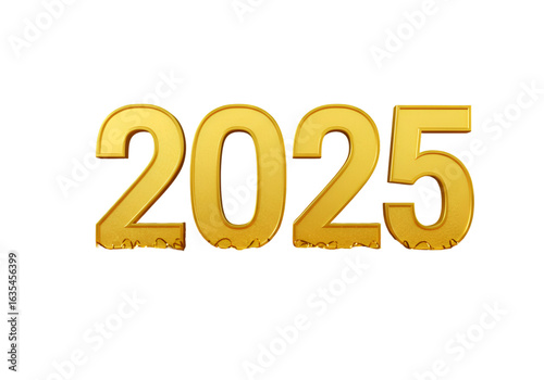 Golden 2025 Number on Transparent Background Isolated Illustration