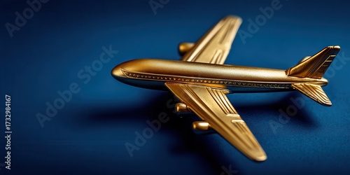 Golden Airplane Model on Blue Background Highlighting a Sleek Design