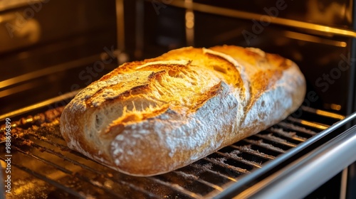 Golden artisanal bread slowly rising in the oven, wonderfully fragrant and ready to be served warm