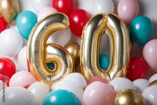 birthday, celebration, balloon, 60, 60, milestone, gold, number, party, decoration, colourful, festive, event, happiness, enjoyment, cheerful, occasion, gathering, memory, fun, joy, printed, anniversary, excitement, theme, design, confetti