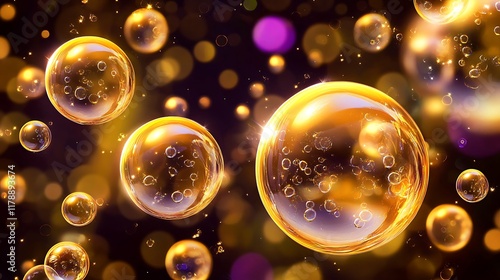 bubble, gold, yellow, dark, background, sphere, glow, light, shiny, bright, abstract, texture, pattern, design, illustration, art, graphic, digital, image, photo, macro, vibrant, luxury, elegant, opulent, rich, shimmer, sparkle, transparent, glossy, smooth, liquid, oil, water, air, science, nature, beauty, cosmetic, product, element