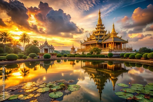 temple, sunrise, serene, spiritual, architecture, calmness, landscape, peaceful, ornate, nature, duck pond, greenery, cultural, heritage, travel, tour tourism, asia, buddhism, spirituality, worship, scenic, historical, majestic, golden hour, meditation, mindfulness, divine, heritage site, travel destination, scenic beauty, calm