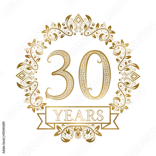 celebration, thirty years, birthday, decoration, stamp, vector, celebrate, design, seal, wedding, art, gold, style, royals, party, year, ceremony, template, jubilee, event, graphic, decor, card, insignia, emblem, modern, icon, foil, age, gold, classic, congratulation, baroque, letter, ornate, symbol, antique, victorian, renaissance, ribbon