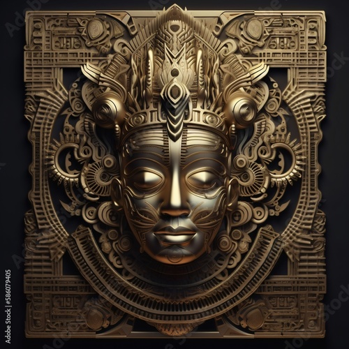 goddess, mask, fantasy, gold, metallic, portrait, symmetric, futuristic, ancient, culture, art, design, intricate, ornate, detailed, surreal, mythical, science fiction, abstract, imaginative, creative, majestic, ornamental, cosmic, celestial, enigmatic, mysterious, exotic, tribal, patterned, textured, shiny, captivating, fascinating, antique, carving, ornament, sculpture, bronze, religion, head