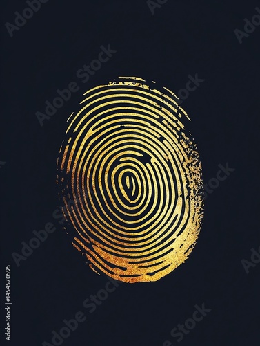 Golden fingerprint on dark background, symbolizing identity, security, and individuality through unique pattern.