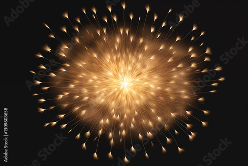 Golden fireworks exploded and piled up in the dark night sky generative ai