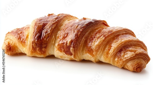 Golden, flaky croissant positioned on a clean white background, representing culinary excellence, comfort food, and a delectable treat for pastry lovers around the world.