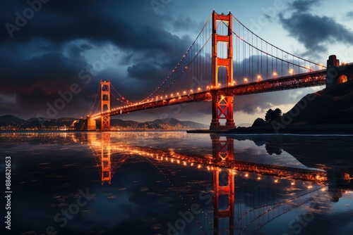 Golden Gate Bridge of renowned and iconic Golden in San Francisco at birth, generative IA