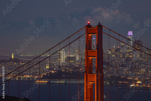 Golden Gate Bridge with City Skyline as the Background at Night, San Francisco