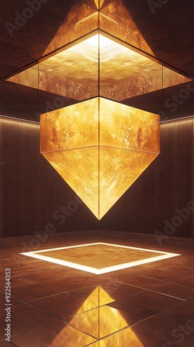 Golden Geometric Shape Inside Modern Room