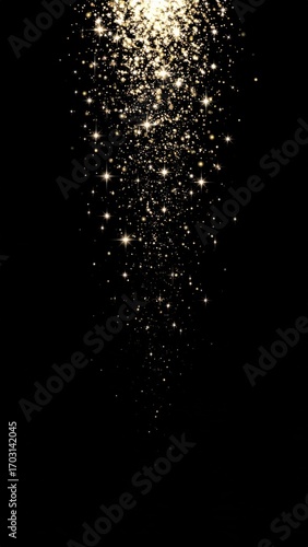 Golden Glitter Sparkle Falling on a Dark Black Background Creating an Elegant Festive Night