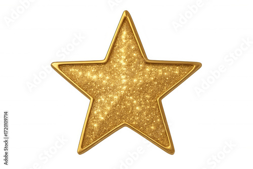 Golden glitter star, shimmering luxury symbol for rating, award, celebration, and premium quality, transparent background