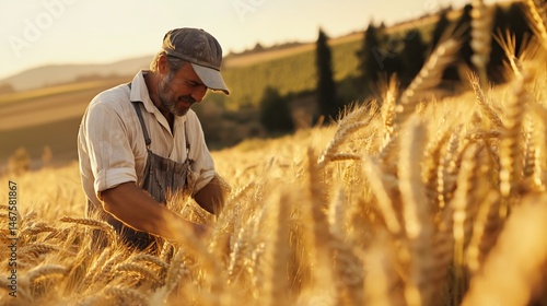 Golden Harvest: A Farmer's Connection to the Land at Sunset time
