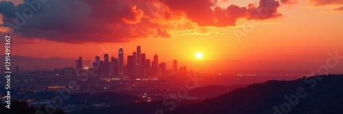 Golden hour hues paint LA skyline, vibrant sunset glow, evening, rays, stunning