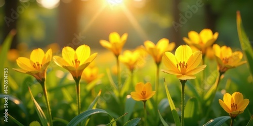 yellow flower, wildflower, golden hour, sunlight, nature, flora, springtime, blossom, bloom, flower petals, sunshine, meadow, field, plant, botany, summer, vibrant, bright, cheerful, beautiful, landscape, greenery, ray, light