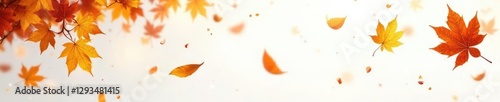 Golden hues of autumn leaves fall onto a pristine white background, fall, landscape