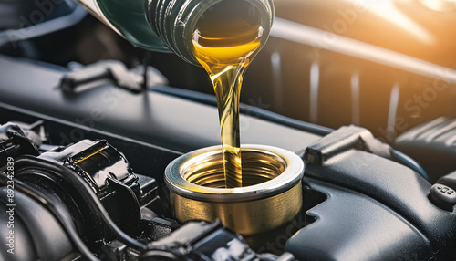 oil, engine, car, automotive, lubricant, maintenance, service, mechanic, garage, workshop, change, pour, bottle, gold, liquid, viscosity, fluid, gasoline, crude oil, fuel, power, performance, vehicle, transportation, road, machine, industrial, technology, engineering, repair, care, part, component, motor, cylinder, piston, gear, transmission, metal, steel, plastic, container, industry, glow, warm, light, sun, ai
