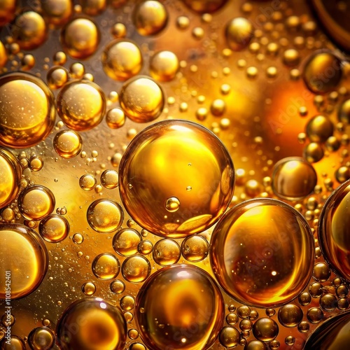 Golden Oil Bubbles Macro Abstract Close-up Photography, Liquid, spheres, texture, background Abstract Photography, Macro Photography