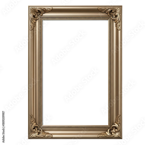 Golden ornate picture frame isolated on transparent background