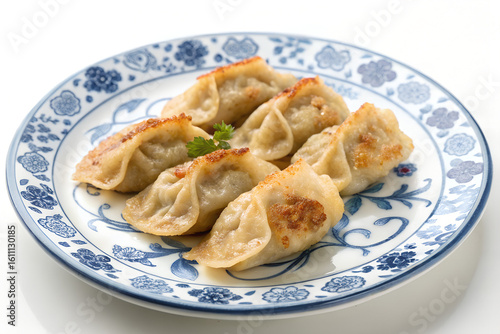dumpling, gold, savoury, asian, herb, garnish, crispy, tender, authentic, hand-made, filling, delicious, snack, exotic, plate, steamed, fusion, receipe, soy, dipping, wrapper, mealtime, epicure, special, frying pan, presentation, texture, favor, festive, cookery