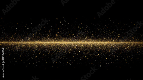 Golden particles falling from above, creating a sparkling and luxurious atmosphere on a dark background. Ideal for festive, celebratory, or luxury-themed designs and creative projects.