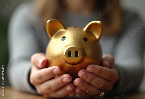 money box, savings, finance, gold, budgeting, investment, personal finance, cheerful, holding, hand, session, calm, sharpened, wealth