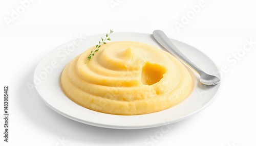isolated, model, render, three-dimensional, polenta, italian, food, white, background, cookery, dish, plate, spoon, thyme, creamy, smooth, gold, meal, lunch, dinner, epicure, delicious, eatery, cooking, culinary, traditional, healthy, vegetarian, simple, presentation, design, menu, studio, shot, nobody, close, up, still, life, european, comfort, surface, minimalist, clean, modern, style, italy, cornmeal, side