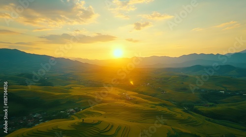 rice, terrace, paddy, field, sunset, mountain, landscape, gold, hill, rural, agriculture, farming, asia, vietnam, view, aerial, drone, photo, nature, scenery, beautiful, stunning, vibrant, colours, yellow, green, sun, sky, cloud, light, ray, horizon, tranquil, peaceful, serenity, amazing, breathtaking, spectacular, majestic, awe, wonder, picturesque, idylli