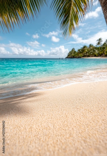 Golden Shadows of Palm Tree Stretching Across the Sandy Beach Under Bright Sky
